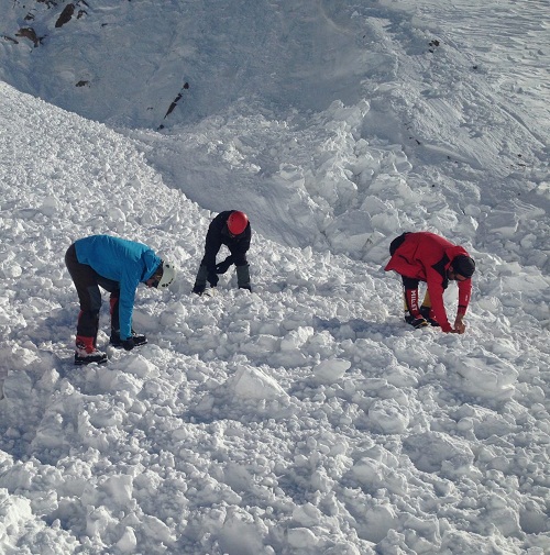 سریعا یک تیم ۶ نفره جهت اعزام به محل ریزش بهمن اماده و شروع به حرکت نمود که در ابتدا مسیر به اقای بیاتی برخورد نمودیم که اطلاعات کامل و دقیقی از محل حادثه به همراه مستندات لازم به ما ارائه دادند و ما به مسیر خود ادامه دادیم.