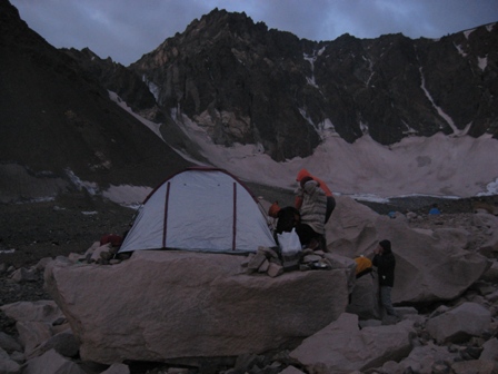 مرحله ۱) در طی طوفان همراه با رعد و برق از خط الراس ها و قلل مرتفع دور شوید. و مطمئنا آنجا چادر نزنید. رعد و برق به هر نزدیک ترین چیز به آسمان برخورد می کند. دور از خط الراس ها نزدیک دره چادر بزنید ، اما نه در ته دره چون ممکن است بسته به مکان سیل جاری شود.
