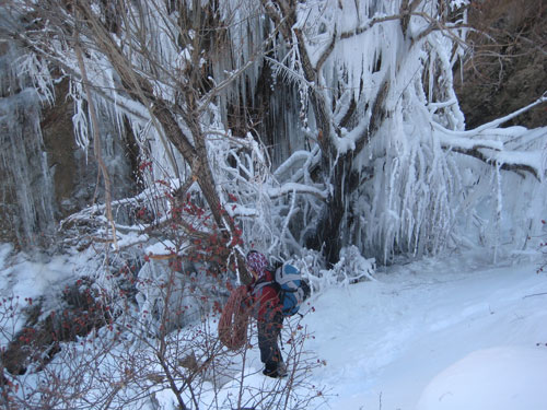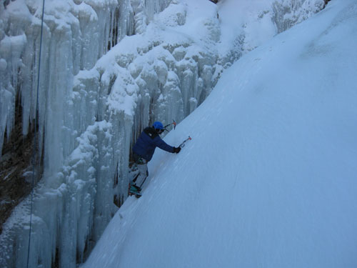 دیواره و شیبهای یخی در آبشار سنگین آباد به طور مصنوعی می باشد که مراحل ایجاد آن در همین سایت موجود است.