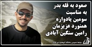 سه سال از درگذشت همنورد عزیزمان زندە یاد رامین سنگینآبادی میگذرد و ما همیشه در تمامی صعودها یاد همنوردانی که اینک از وجود شان محرومیم را، زنده نگەداشته و به یادشان بوده و هستیم.لذا به همین مناسبت گرد هم می آییم تا مراسم یادبودی روز پنجشنبە ساعت ۱۴ بر سر مزارش برگزار کنیم. روز جمعە نیز با صعود بە قلە بدر یک بار دیگر حس در کنار هم بودن را به نمایش میگذاریم.