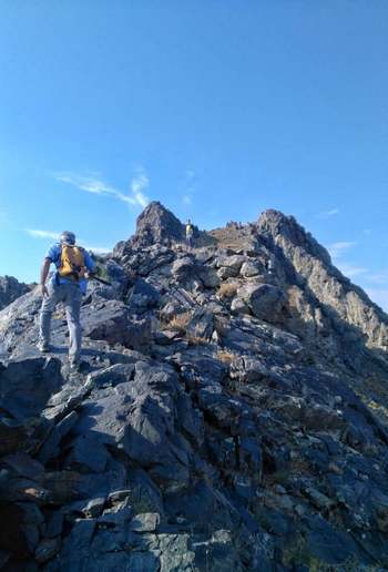 بعد از رسیدن به خط الراس به طرف قله که مسیرش دست بسنگ می باشد، رفته و ساعت ۸:۳۰ موفق به صعود قله قلوز شدیم.