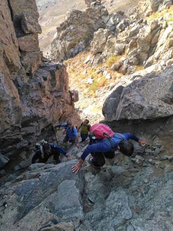 پس از برداشتن آب به طرف چشمه های بالا حرکت کرده و با مشورت اعضا، از مسیر جدیدی به طرف قله قلوز حرکت کردیم.
