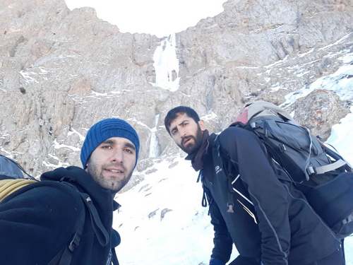 قرارمان این بود کە تا همینجا صعود کنیم چون از پایین کە بە آبشار نگاە میکردیم، بە نظر میآمد کە قسمت انتهای آبشار یخ نازک و ناپایداری دارد و در بیشتر قسمتها یخ کاملا ذوب شدە و ریسک صعود زیادی دارد اما با رسیدن بە اینجا و بررسی شرایط موجود، کنجکاوی و حس ماجراجویی همراە با رگەای از ریسک منطقی باعث شدە کە بە فکر ادامەی مسیر باشم.