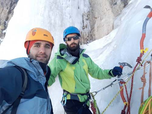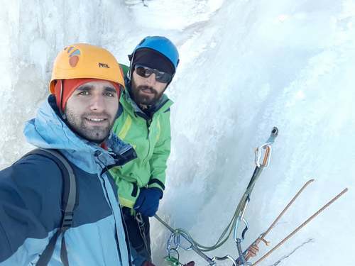 شروع طول دوم باز هم رحمان سرطناب میرود. طول دوم سختتر از طولهای اول و سوم میباشد. یاد اولین باری میافتم کە در همین جای امروز ایستادە بودم و بە آبشار با تردید بە قابل صعود بودن، نگاە میکرد. قبل از آن فیلم و عکسهای زیادی را در فضای مجازی دیدە بودم اما واقعیت چیز دیگریست و انسان در مواجە با واقعیتهاست کە قابلیت خود را نشان میدهد. آن سال در جوار اساتید بزرگ یخنوردی ایران در یک کلاس آموزشی بە مربیگری آقای ژروم از فرانسە، شرکت کردە بودیم تا تکنیکهای صعود آبشاریخیهای عمودی و دشوار را یاد بگیریم و مساٸل فنی مربوطە رو آموزش ببینیم. همەی این خاطرات مثل تکە فیلمی از ذهنم عبور میکرد در حالی کە رحمان پیچ اول را هم نصب کردە بود و من حواسم بیشتر در گذشتە بود.