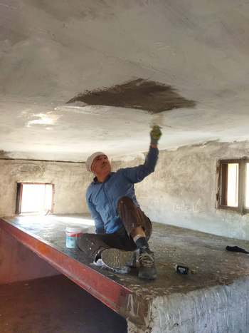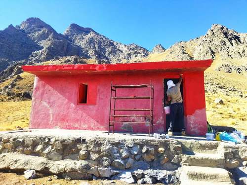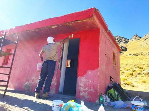 پس از حمل رنگ و وسایل مورد نیاز ساعت ۱۷:۳۰ به پناهگاه رسیده و مشغول تمیز کردن و پاک کردن دیوارها شدیم.